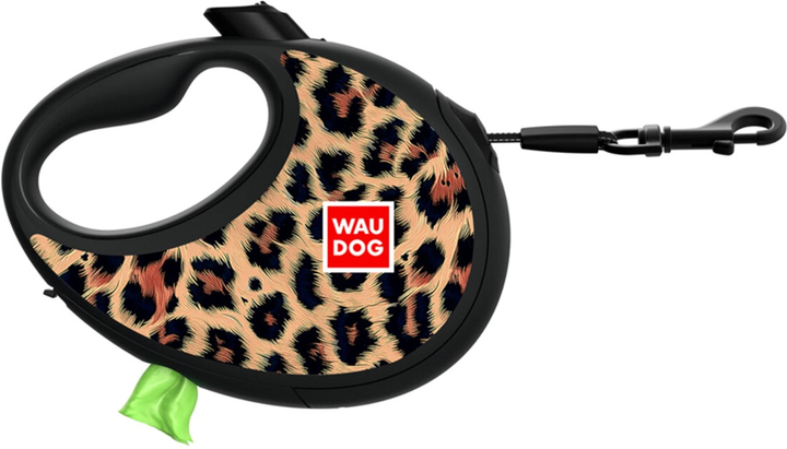 Повідець-рулетка для собак WAUDOG R-leash з контейнером для пакетів, малюнок "Леопард", світловідбивна стрічка, L, до 40 кг,