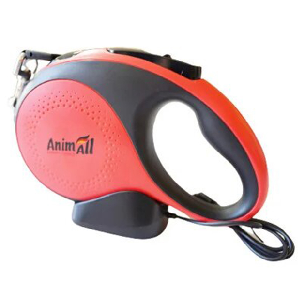 Повідець-Рулетка AnimAll з LED-ліхтариком для собак вагою до 50 кг, 5 м, червоно-чорна L