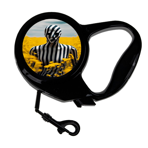 Повідець-рулетка для тварин із принтом чорно білий арт 3 м чорний
