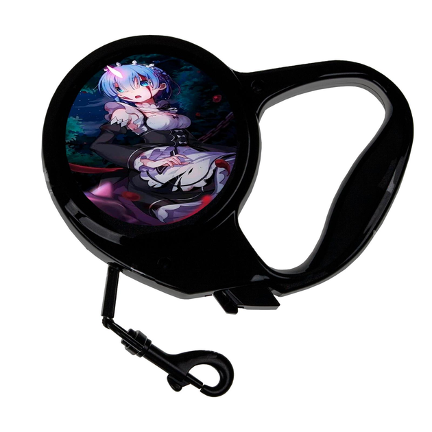 Повідець-рулетка для тварин із принтом Аніме Життя в альтернативному світі з нуля #0018 3 м чорний