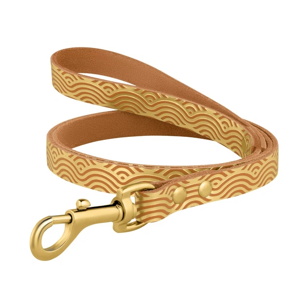 Повідець для Собак Шкіряний Classic Одинарний із Золотим Тисненням Хвиля Гірчиця 10 мм 122 см (581014)