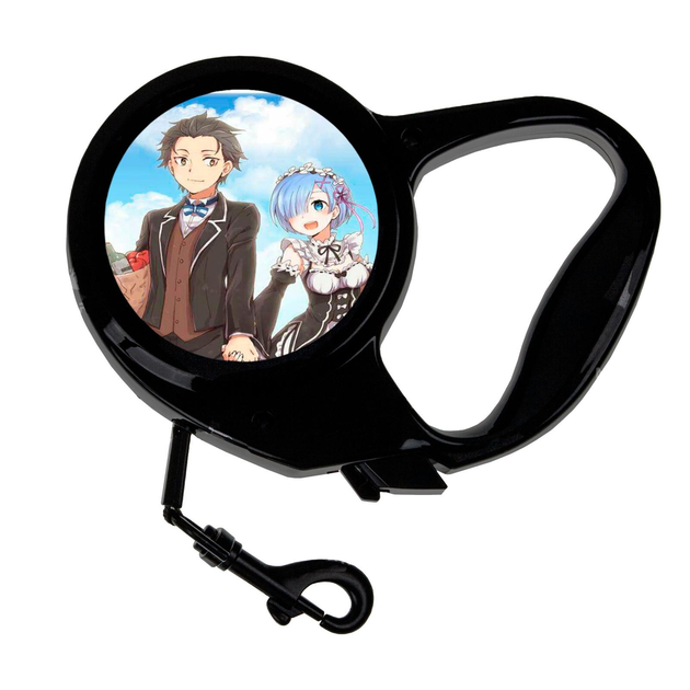 Повідець-рулетка для тварин із принтом Аніме Життя в альтернативному світі з нуля #0001 3 м чорний