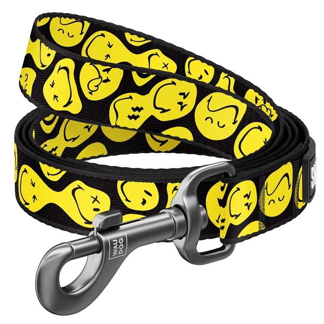 Повідець для собак нейлоновий WAUDOG Nylon, малюнок "Смайли на чорному", М, Ш 20 мм, Дл 122 см