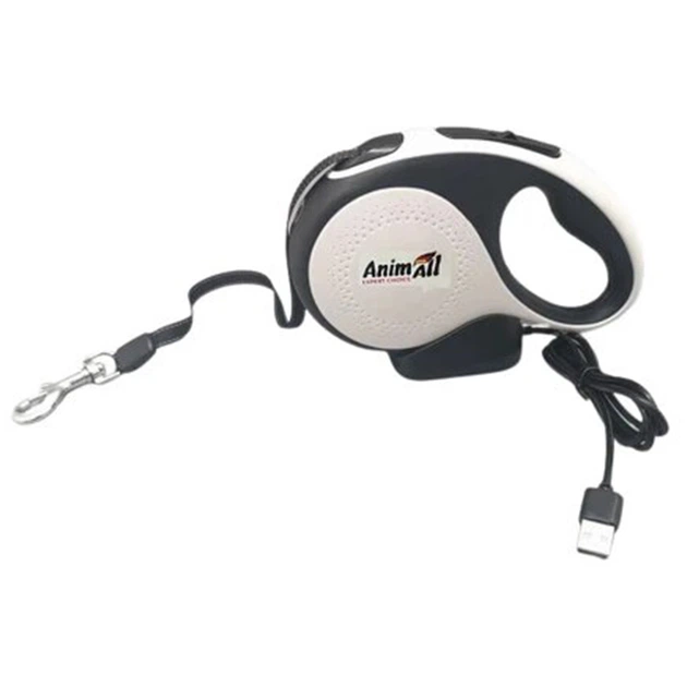 Повідець-Рулетка AnimAll з LED-ліхтариком для собак вагою до 50 кг, 5 м, біло-чорна L