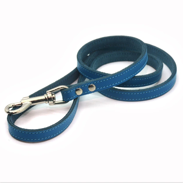 Повідець для собак і котів Zoo-hunt шкіряний Весна блакитний 1,2/120 см