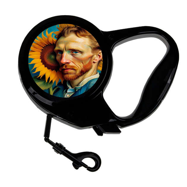 Повідець-рулетка для тварин із принтом ван гог та соняшник 3 м чорний