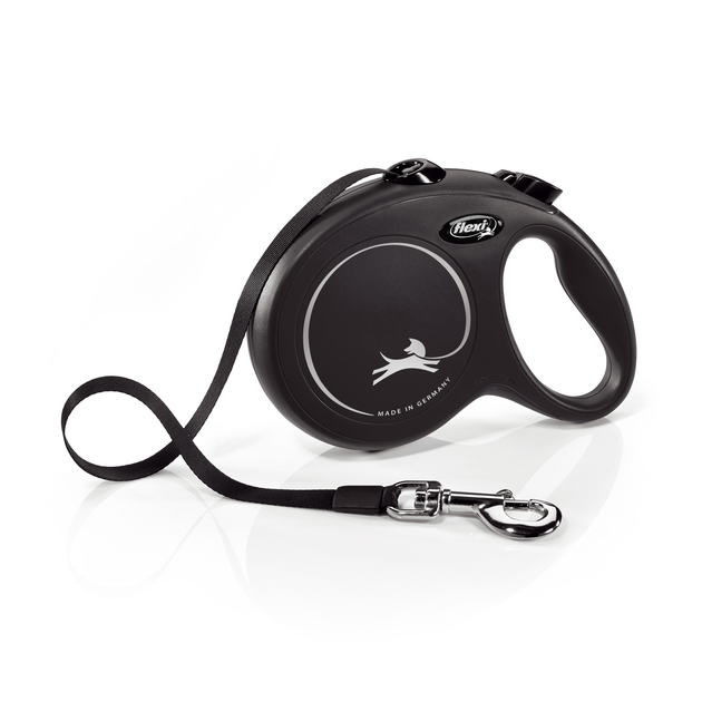 Повідець-рулетка Flexi New Classic для собак, зі стрічкою, розмір L 5 м / 50 кг (чорна)