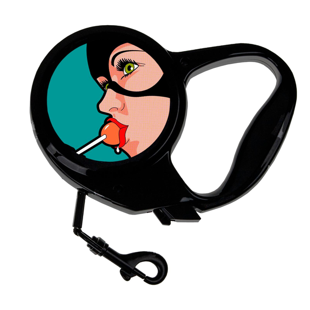 Повідець-рулетка для тварин із принтом жінка-кішка та чупа-чупс 3 м чорний