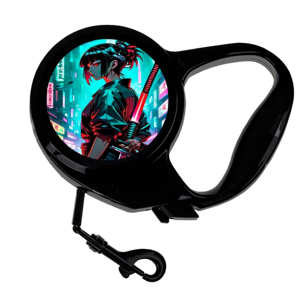 Повідець-рулетка для тварин із принтом арт жінка самурай 3 м чорний