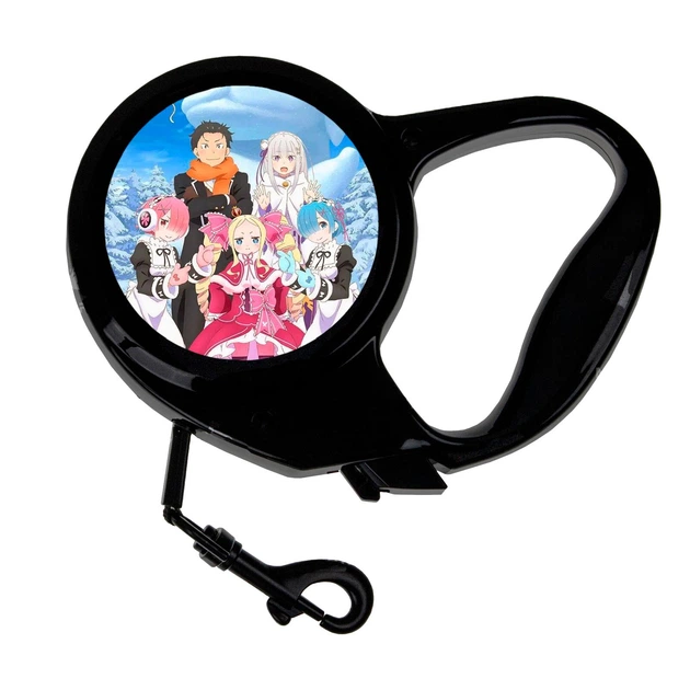 Повідець-рулетка для тварин із принтом Аніме Життя в альтернативному світі з нуля #0007 3 м чорний