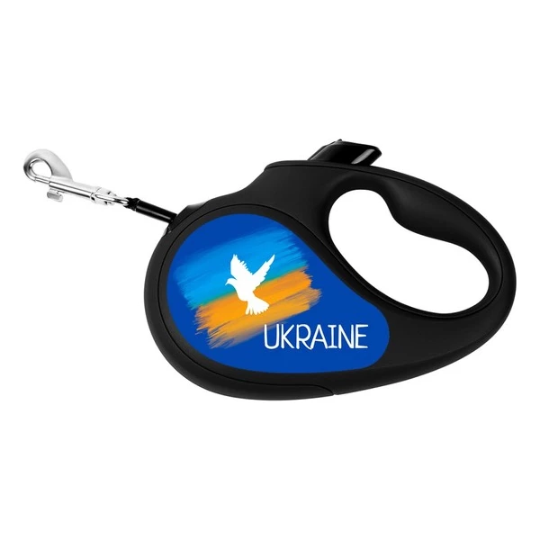 Повідець-рулетка для собак WAUDOG R-leash, малюнок "Прапор", M, до 25 кг, 5 м, світловідбивна стрічка чорний(4823089350202)