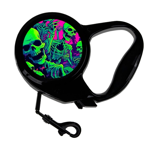 Повідець-рулетка для тварин із принтом скелети 3 м чорний