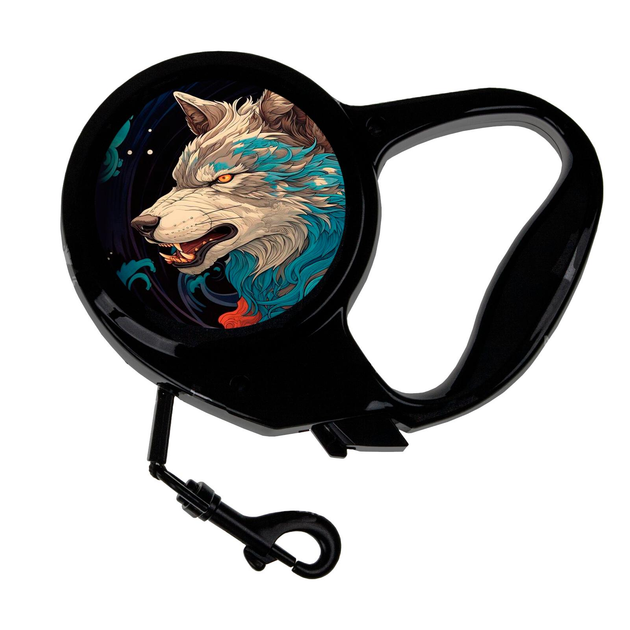 Повідець-рулетка для тварин із принтом вовк 3 м чорний