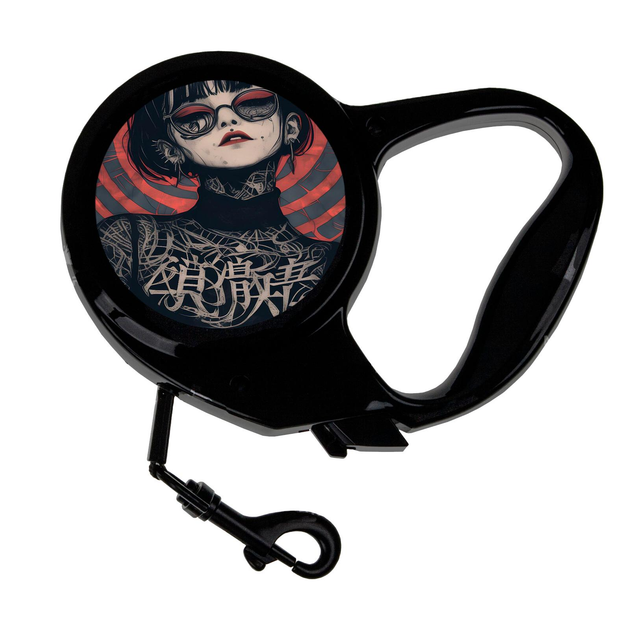 Повідець-рулетка для тварин із принтом Дівчина арт #06 3 м чорний