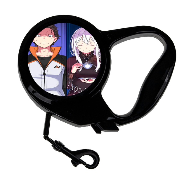 Повідець-рулетка для тварин із принтом Аніме Життя в альтернативному світі з нуля #0022 3 м чорний