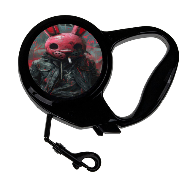 Повідець-рулетка для тварин із принтом червоний кролик 3 м чорний