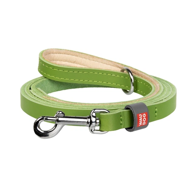 Повідець для котів та дрібних собак WAUDOG Classic шкіряний салатовий, ширина 12 мм, довжина 122 см, металева фурнітура, роз