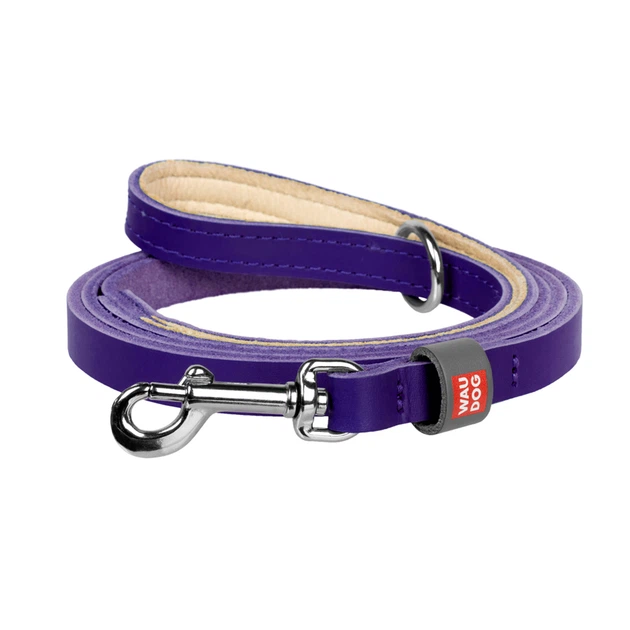 Повідець для котів та дрібних собак шкіряний WAUDOG Classic, XXS-XS, Ш 12 мм, Довжина 122 см, фіолетовий