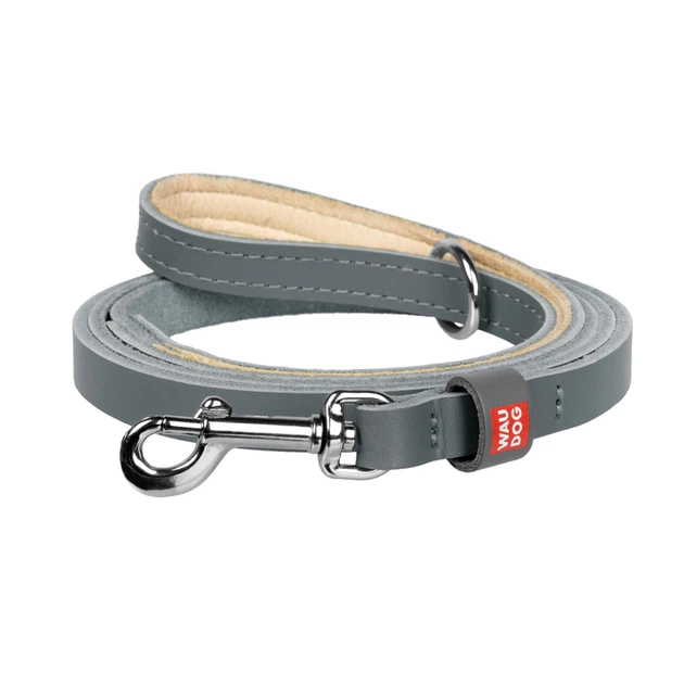 Повідець для котів та дрібних собак шкіряний WAUDOG Classic, XXS-XS, Ш 12 мм, Довжина 122 см, сірий