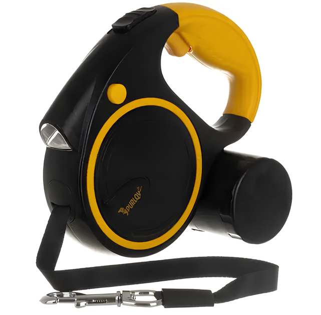 Автоматичний повідець рулетка з боксом для пакетів світлодіодним ліхтариком фіксацією стрічки для собак вагою 10–25 кг 5 м (