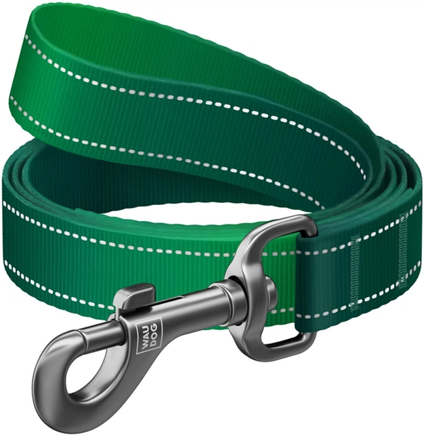 Повідець для собак нейлоновий WAUDOG Nylon Mono світловідбиваючий M 20 мм 122 см Зелений (521818Collar)