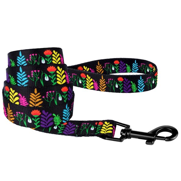 Повідець Для Собак BronzeDog Urban Квіти Нейлоновий Чорний 16 мм 152 см (60/1401)
