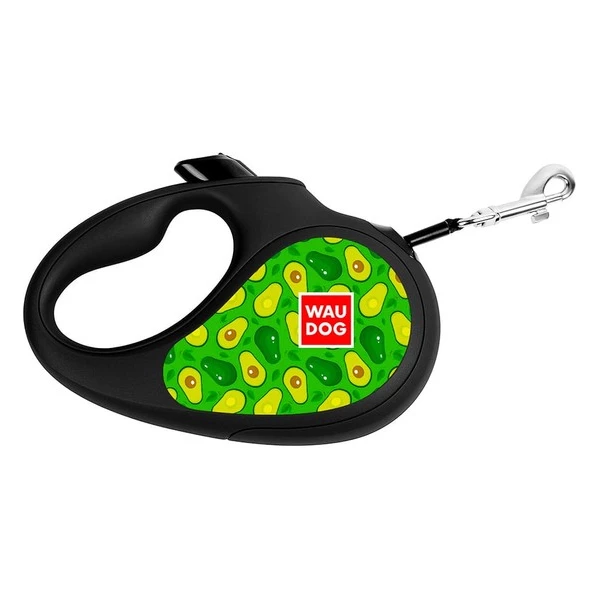 Повідець-рулетка для собак WAUDOG R-leash, малюнок "Авокадо", S, до 15 кг, 5 м, світловідбивна стрічка чорний(4823089320571)
