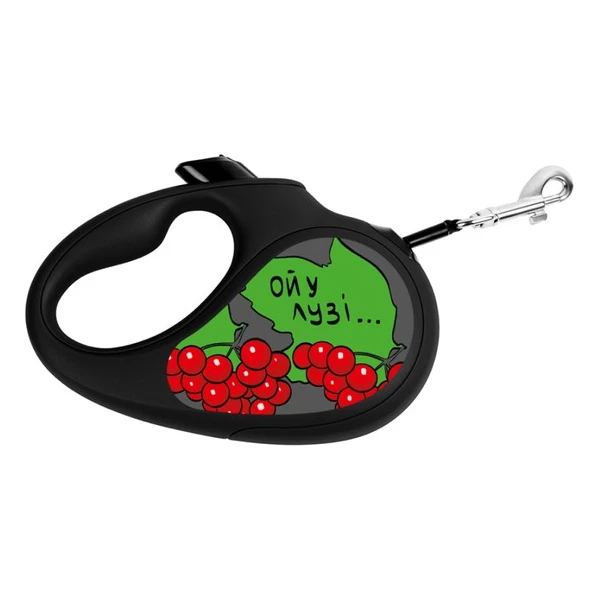 Повідець-рулетка для собак WAUDOG R-leash, малюнок "Калина", S, до 15 кг, 5 м, світловідбивна стрічка чорний(4823089350059)