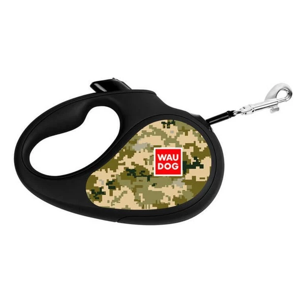 Повідець-рулетка для собак WAUDOG R-leash, малюнок "Мілітарі", S, до 15 кг, 5 м, світловідбивна стрічка(4823089358802)