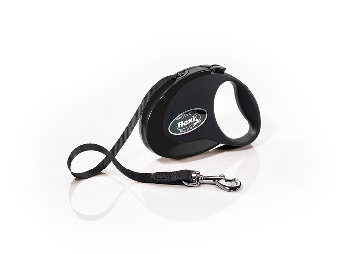 Рулетка для собак Flexi Black Design М 5 метрів, до 20 кг (чорна), повідець із тросом