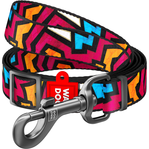 Повідець для собак нейлоновий WAUDOG Nylon, малюнок "Графіті", регульований, Ш 20 мм, Дов 152-183 см