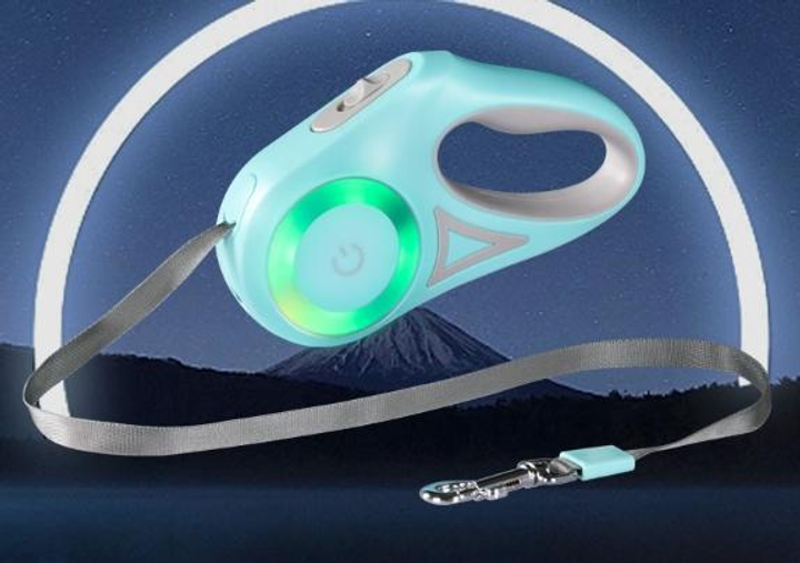 Повідець-рулетка з вбудованим ліхтариком стрічка 5м Сіро- блакитний