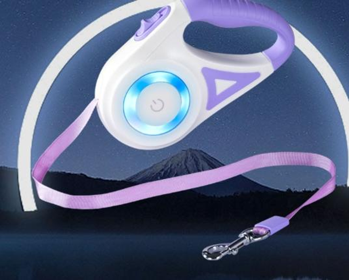 Рулетка-повідець Kussa з LED-підсвіткою, стрічка, 5 м, білий + фіолетовий
