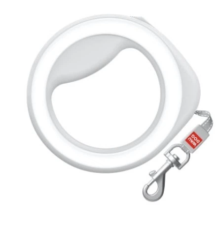 ПОВІДЕЦЬ-РУЛЕТКА ДЛЯ СОБАК WAUDOG R-LEASH, КРУГЛА, XS-M, ДО 40 КГ, 2,9 М, СВІТЛОВІДБИВАЮЧА СТРІЧКА, БІЛИЙ