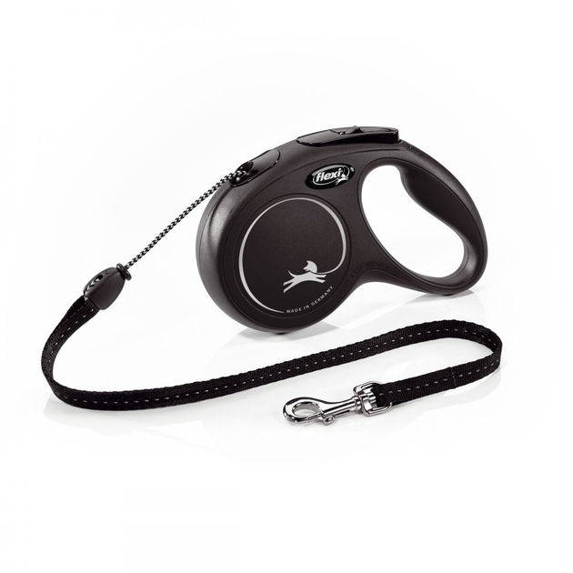 Повідець-рулетка Flexi New Classic для собак, з тросом, розмір M 5 м / 20 кг (чорна)