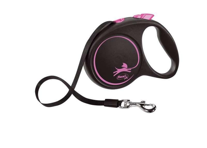 Flexi (Флексі) Black Design M - Повідець-рулетка для собак середніх порід, стрічка (5 м, до 25 кг) рожевий