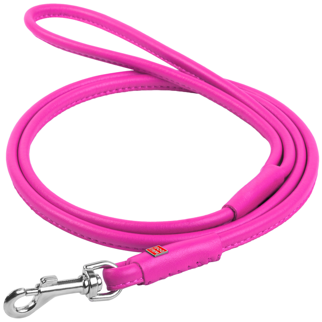 Круглий шкіряний повідець для собак WAUDOG Glamour 183 см 6 мм Рожевий (34387)