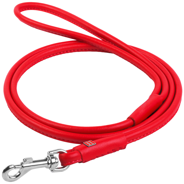 Круглий шкіряний повідець для собак WAUDOG Glamour 183 см 6 мм Червоний (34383)