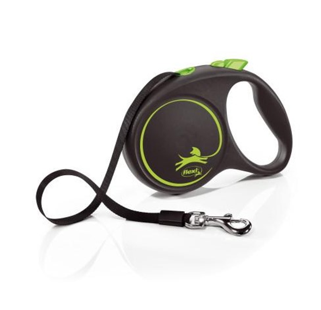 Повідець-рулетка Flexi Black Design для собак L, стрічка 5 м до 50 кг Green