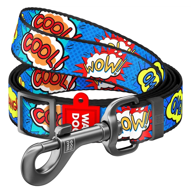 Повідець для собак нейлоновий WAUDOG Nylon, малюнок "ВАУ", регульований, Ш 25 мм, Дов 152-183 см