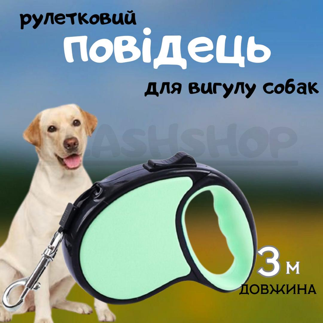 Автоматичний, міцний, висувний повідець рулетка для собак та кішок 3 метри (м'ятний)
