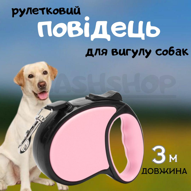 Автоматичний, міцний, висувний повідець рулетка для собак та кішок 3 метри (чорно-рожевий)