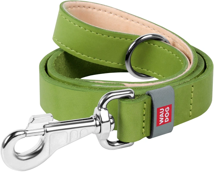 Повідець для собак шкіряний WAUDOG Classic S-M Ш 20 мм Дл 122 см Салатовий (08145Collar)