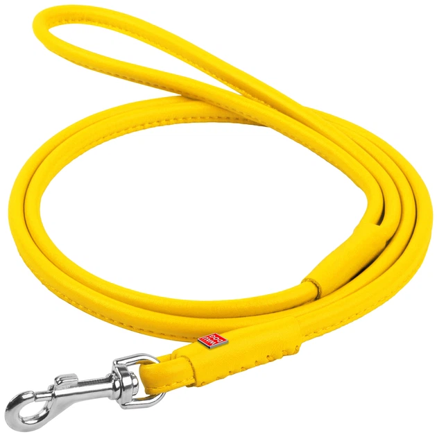 Круглий шкіряний повідець для собак WAUDOG Glamour 183 см 4 мм Жовтий (34378)