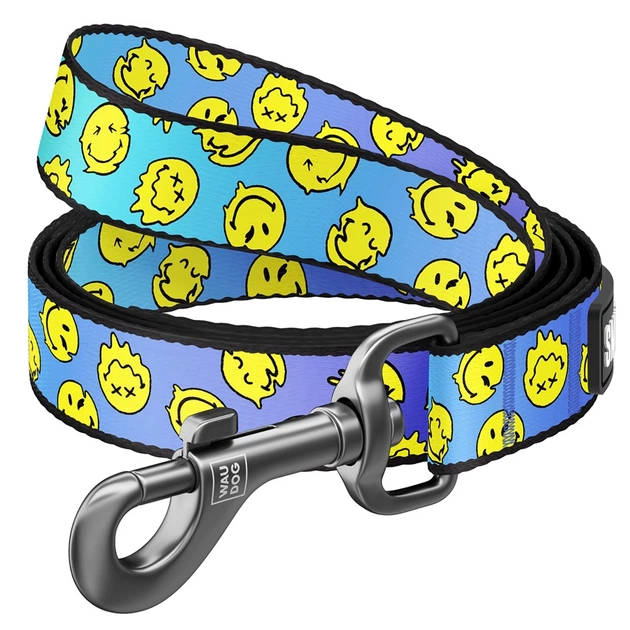 Повідець для собак нейлоновий WAUDOG Nylon, малюнок "Смайли на блакитному", S, Ш 15 мм, Дов 122 см