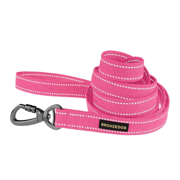 Повідець Собак Bronzedog Сotton Рефлекторний х/б Брезент Рожевий 16 мм 200 см (60207)