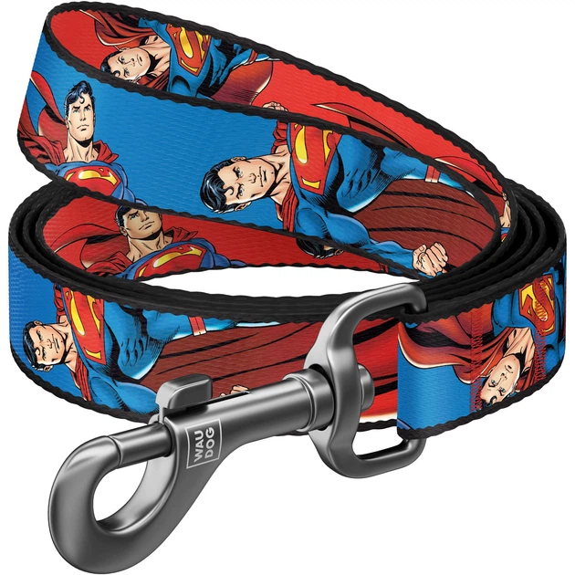 Повідець для собак нейлоновий WAUDOG Nylon, малюнок "Сила Супермена", розмір M, 122 см, 20 мм
