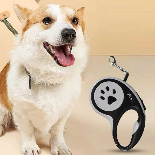 Автоматичний видвижний поводок-рулетка 3 м до 10 кг Сіро-Чорний Pet dog