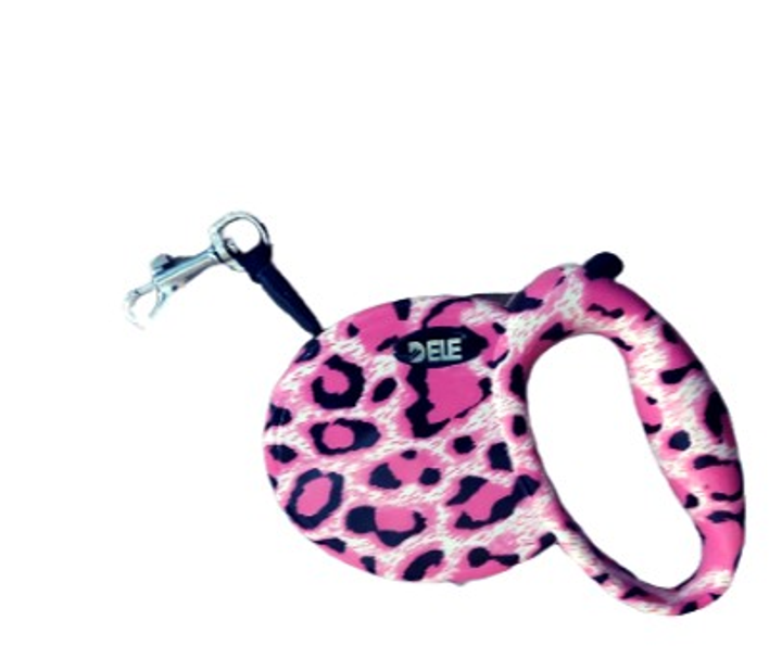Поводок-рулетка для собак до 15 кг довжина 3 м рожевий з леопардовим принтом