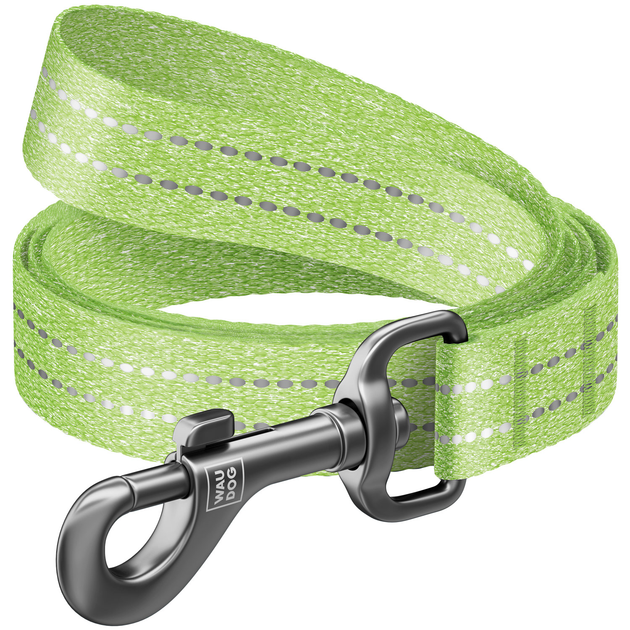 Повідець для собак з відновленої бавовни WAUDOG Re-cotton світловідбивний L-XXL Ш 25 мм Дл 500 см Салатовий
